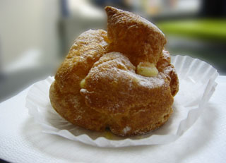a'la bonne heureというお菓子屋さんで水曜日しか作っていない、限定販売のシュークリームです。値段も1個105円と手頃。(お店の人の名誉のために付け加えておくと、本当は単なるシュークリームではなく、もっとかっこいい名前がついていた気がするのですが、どうしても思い出せません。)