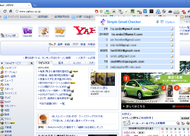 ºÇ¶áChrome¤Î³ÈÄ¥µ¡Ç½¡ÊFirefox¤Ç¤¤¤¦¥×¥é¥°¥¤¥ó¡Ë¤ò¸¡º÷¤·¤Æ¤¤¤¿¤éSimple Gmail Checker¤È¤¤¤¦¥×¥é¥°¥¤¥ó¤¬¤¢¤ê¡¢simple¤È¤¤¤¦Ì¾Á°¤Ç¤¹¤¬Ê£¿ô¥¢¥«¥¦¥ó¥È¤ÎÀÚÂØ¤Ê¤É´ðËÜŪ¤Ê¤³¤È¤Ï¤Ç¤¤ëÍͻҤÀ¤Ã¤¿¤Î¤Ç»î¤·¤Æ¤ß¤Þ¤·¤¿¡£